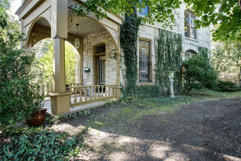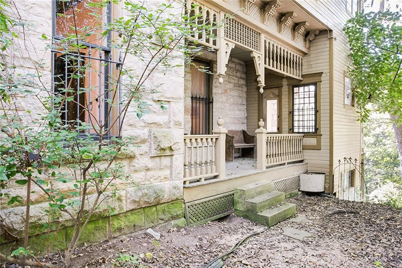 The impressive front portion of the castle includes a balcony that looks to the east. It is the only house on Eureka Street with a balcony facing that direction. That proved very important to Smith, as he bought the house sight unseen after being told about the balcony where he could watch the construction of his Christ of the Ozarks statue from home.